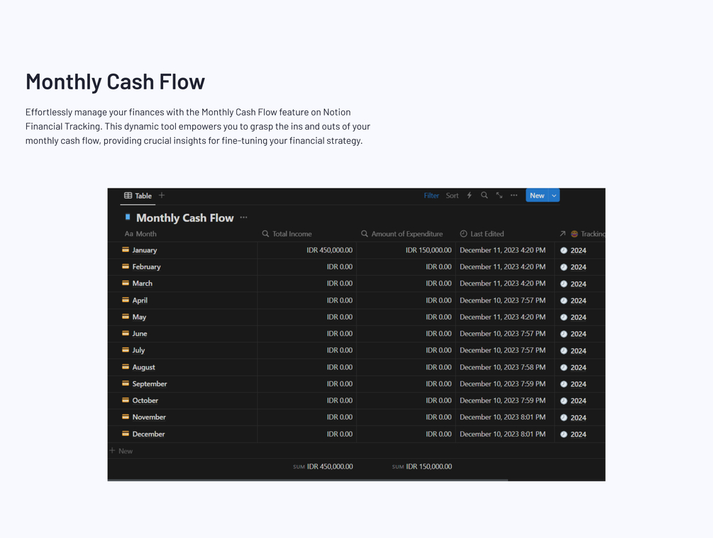 🚀 Effortless Integration: Seamlessly integrate Notion Financial Tracking into your existing Notion workspace, enhancing your productivity and centralizing your financial management.