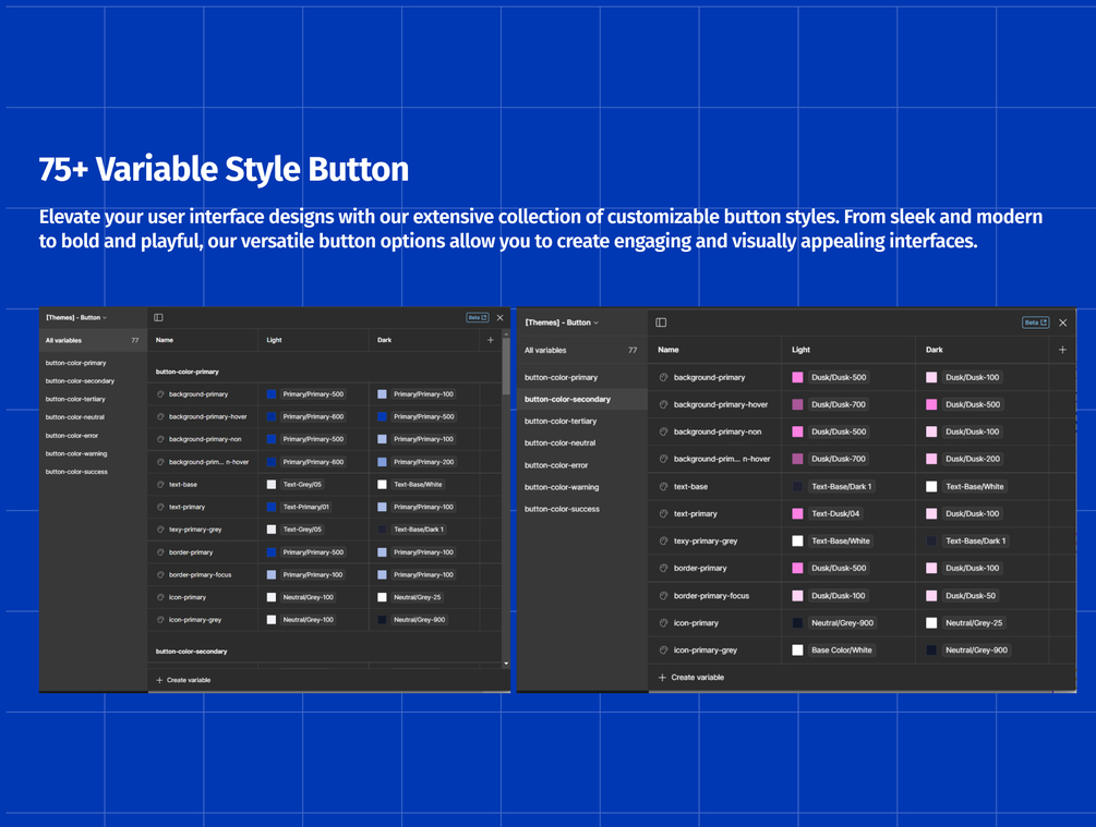 Don't let your UI designs be limited by time-consuming button creation. Elevate your Figma designs to new heights with the UI Button Kit Design System (with Pro Variable Features). Enhance the user experience, achieve design consistency, and expedite your design process. Get your hands on this indispensable toolkit today and witness the transformative power it brings to your UI designs.